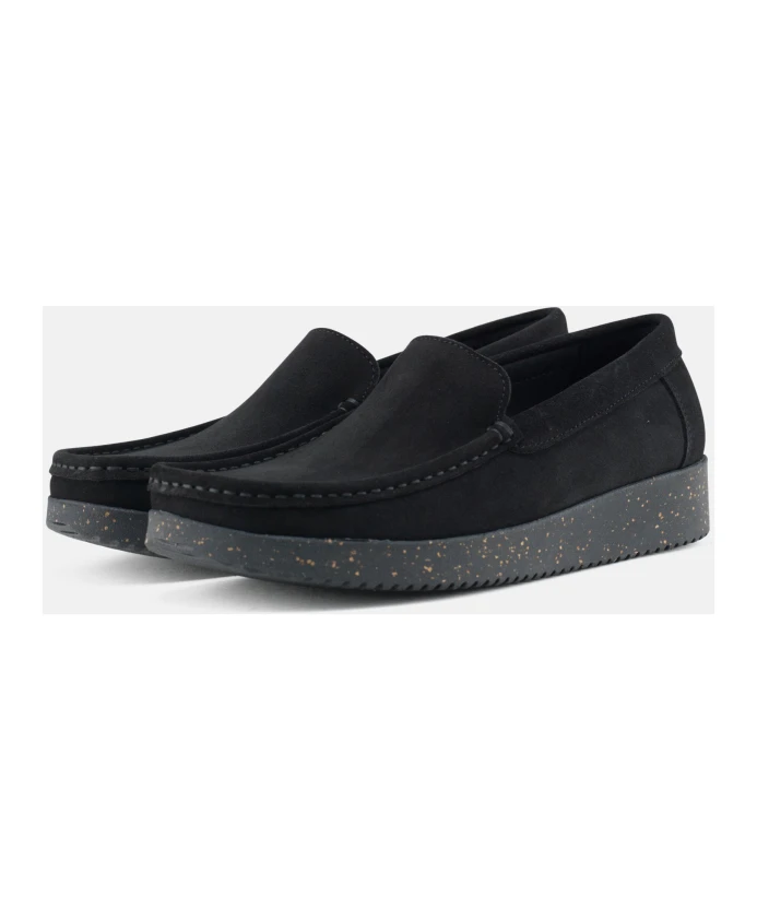 Выйдите на улицу стильно с лоферами Nature Footwear Elin черного цвета. Эти лоферы изготовлены из водостойкой замши и оснащены подкладкой и стельками OnSteam для максимального комфорта. Эргономичная подошва из натурального каучука с остатками пробки обеспечивает долговечность. Сделано в Португалии, Европе.