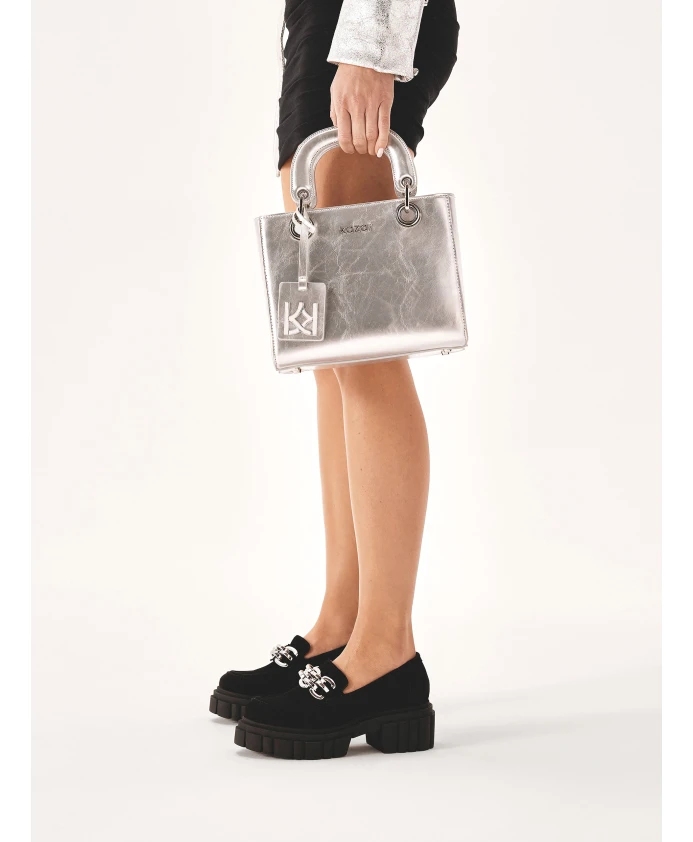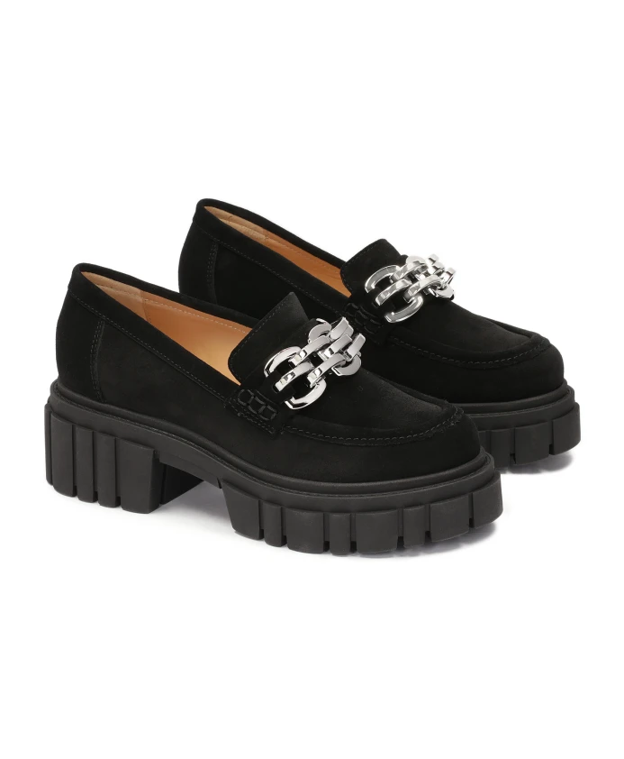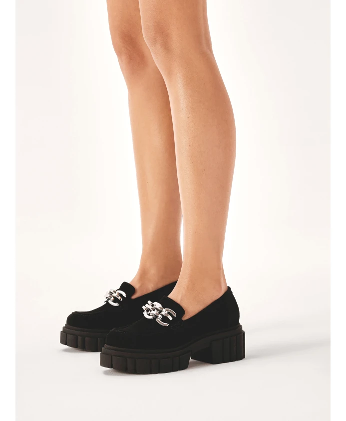 Ботильоны с нескользящим верхом и массивной декорированной подошвой представляют собой классический крой в современной интерпретации. Простой верх выполнен из высококачественной замши, отличающейся мягкостью и приятной текстурой. Контраст между минималистичным верхом и высокой подошвой выглядит очень привлекательно. Эта оригинальная модель должна быть в гардеробе каждой модницы, которая любит сочетать моду с комфортом. Внутренняя часть обуви, обитая мягкой полуанилиновой козьей кожей, гарантирует гигиенические условия и высокий комфорт.