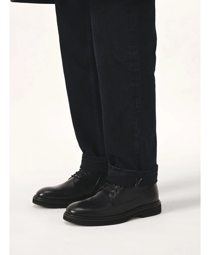 Простые минималистичные туфли из натуральной кожи – это элегантная обувь, сочетающая классический дизайн с современной функциональностью. Они имеют тонкий, облегающий фигуру крой, который придает им стильный, элегантный вид и подходит как для полуформальных, так и для повседневных нарядов. Характерной особенностью этих кроссовок является сочетание шнуровки и молнии. Шнуровка расположена спереди, что обеспечивает точную посадку обуви, а молния расположена сбоку, что позволяет легко надевать и быстро снимать обувь. Весь дизайн минималистичный, без лишних излишеств, что делает эту обувь универсальной и вневременной. Внутренняя часть обуви с текстильной подкладкой создает ощущение комфорта и тепла.