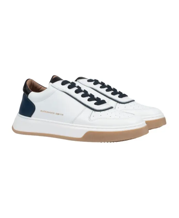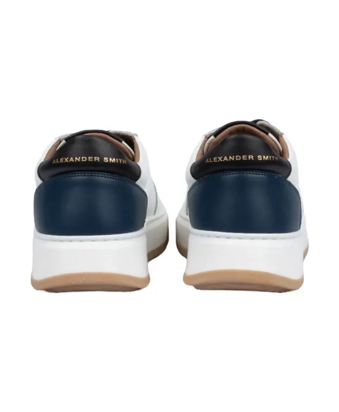 Будьте стильными в этих мужских кроссовках Alexander Smith. Эти кроссовки, выполненные из белой телячьей кожи, украшены золотыми фирменными деталями, синим каблуком, черными вставками и подошвой в стиле МакКуина. Эти кроссовки, изготовленные из высококачественной кожи, необходимы каждому модному мужчине.