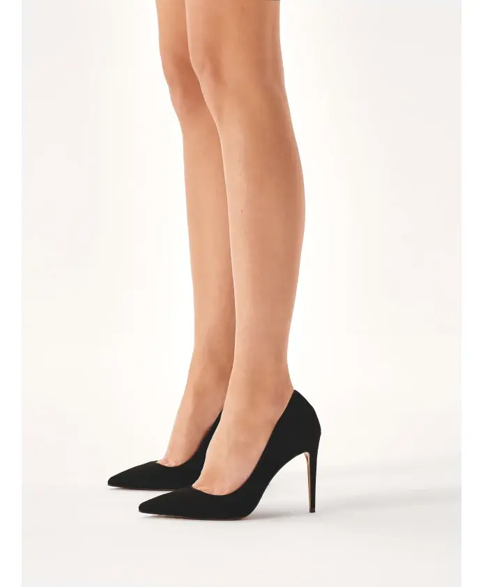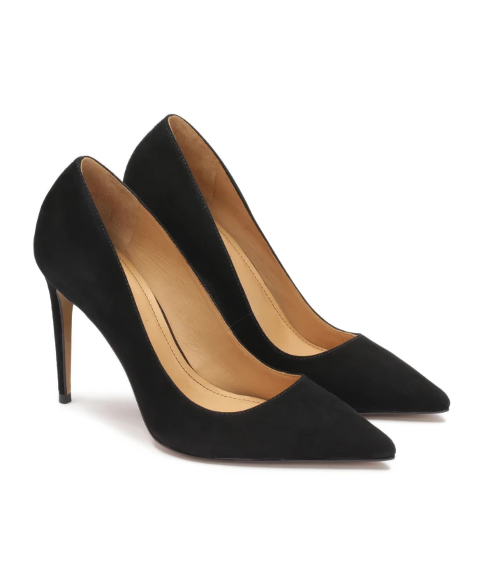 Черные туфли на шпильке из качественной замши – универсальная, вневременная обувь, которая станет отличным выбором для разных случаев. Их можно носить каждый день, для официальных встреч и официальных мероприятий. Заостренные носы и высокие, но прочные каблуки подчеркивают женственный силуэт. Мягкая замша влияет на комфорт и внешний вид обуви. Подошва из тунисской кожи отличается прочностью и эстетичным внешним видом. Подкладка из полуанилиновой овчины обеспечивает исключительный комфорт благодаря отличным свойствам поглощения влаги.