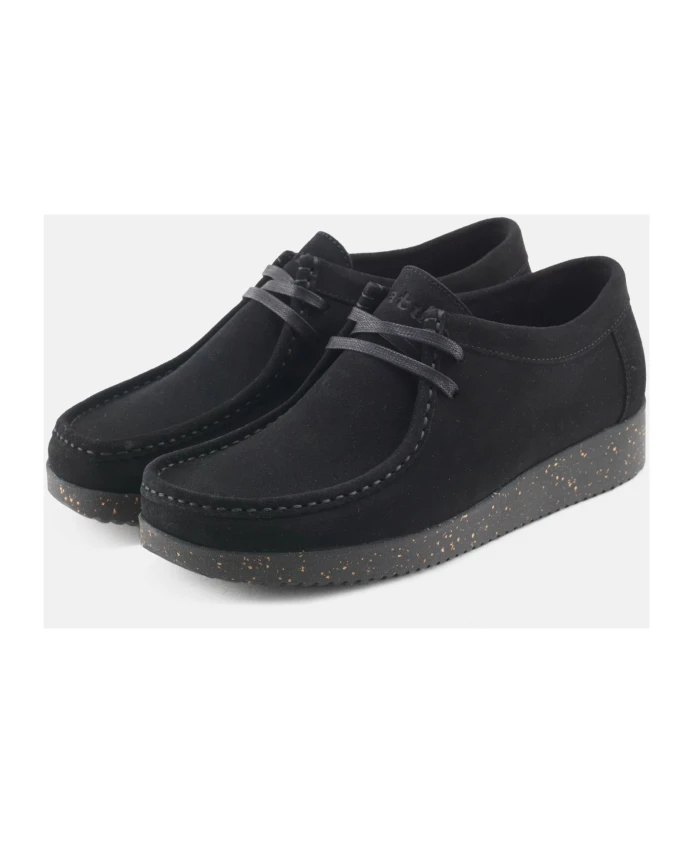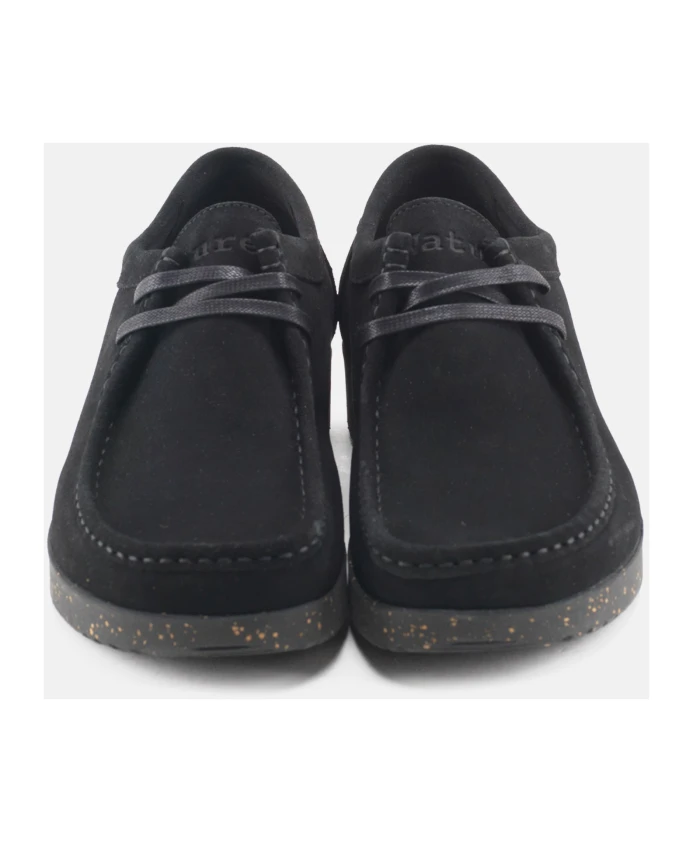 Nature Footwear представляет туфли на шнуровке Alba черного цвета. Эти замшевые туфли, изготовленные вручную в Европе, Португалии, водонепроницаемы и оснащены запатентованной амортизирующей резиновой подошвой с остатками пробки. Конструкция мокасин обеспечивает исключительную поддержку, а асимметричная колодка повторяет естественную форму стопы. Идеально подходит для всех сезонов.