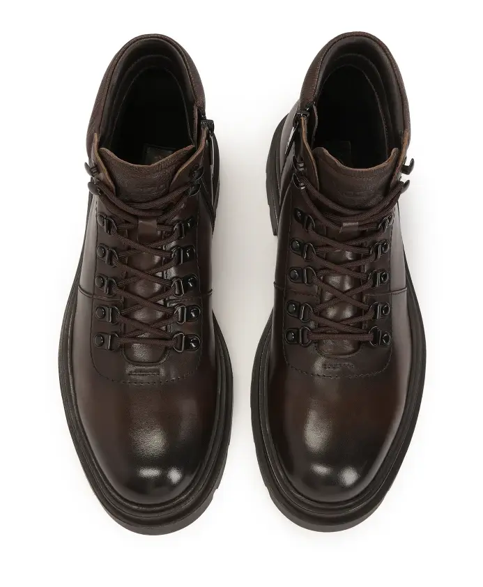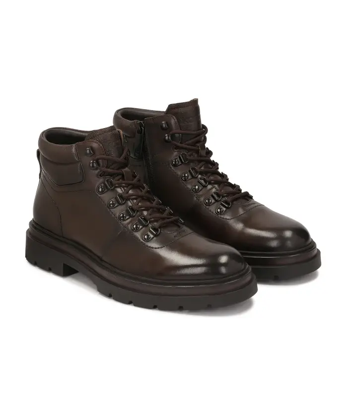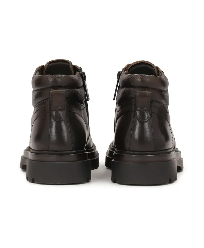 Коричневые мужские ботинки из натуральной кожи гарантируют долговечность и износостойкость, придавая классический и стильный вид. Коричневый цвет добавляет элегантности и легко сочетается с различными цветами одежды, что делает эти ботинки чрезвычайно универсальными. Ботинки утеплены, обеспечивая дополнительный слой изоляции и комфорта в холодные дни. Шнуровка с дополнительной молнией не только облегчает надевание и снятие обуви, но и позволяет лучше прилегать к ноге, повышая комфорт. Профилированная подошва, известная своим превосходным сцеплением и устойчивостью к истиранию, идеально подходит для скользких или неровных поверхностей. Внутренняя часть обуви дополнена текстилем для комфорта и удобства в холодную погоду.
