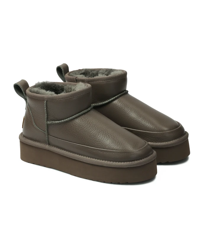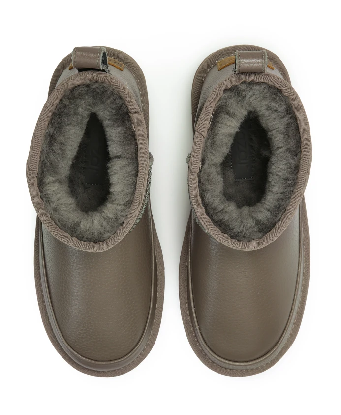 Женские зимние сапоги серо-коричневого цвета – это сочетание комфорта, тепла и стиля. Верх из мягкой натуральной кожи не только придает элегантный вид, но также отличается долговечностью и устойчивостью к атмосферным воздействиям. Низкопрофильный дизайн позволяет их удобно надевать и снимать, сохраняя при этом удобство ношения. Внутренняя часть зимних ботинок отделана мягкой синтетической овчиной, которая удобно обхватывает ноги и обеспечивает дополнительное тепло и комфорт в холодные дни. Толстая подошва ботинок изолирует землю, сохраняя ногу в тепле и сухости даже во время длительных прогулок по заснеженным улицам. Снегоступы – это не только практичная зимняя обувь, но и стильное дополнение к повседневному и выходному образу, идеальное для прогулок по городу или лыжных прогулок. Мягкая подкладка из овчины гарантирует высокий комфорт.