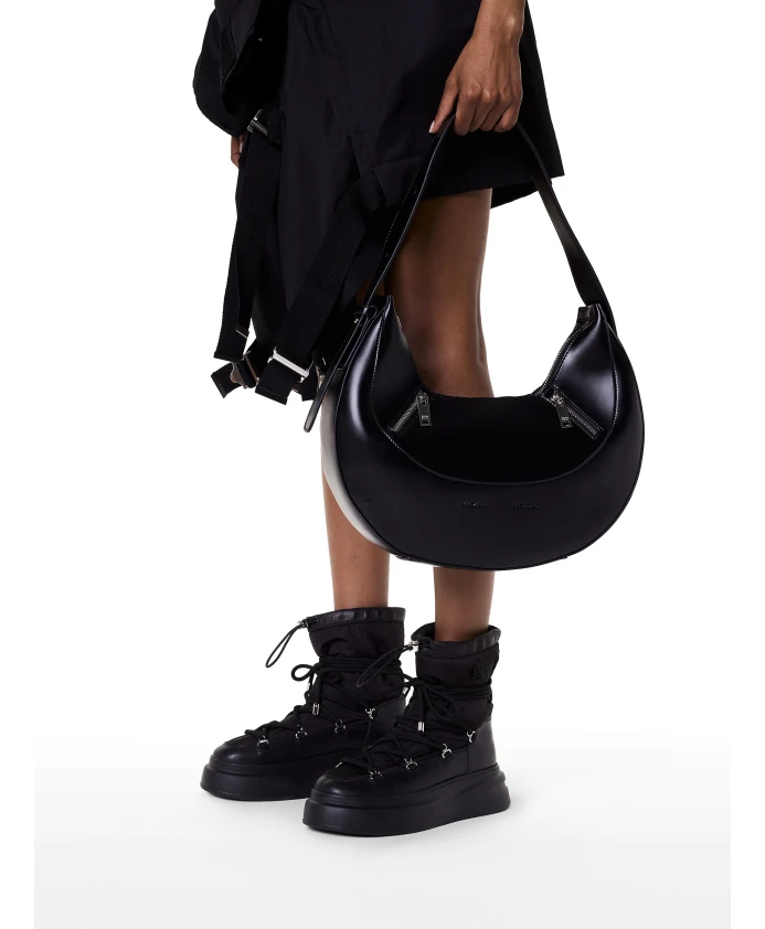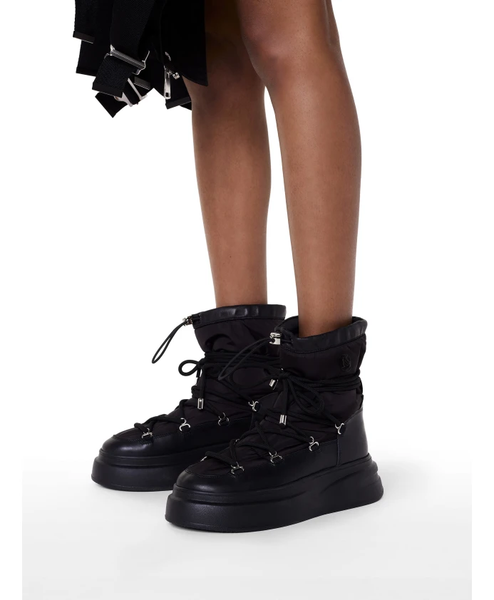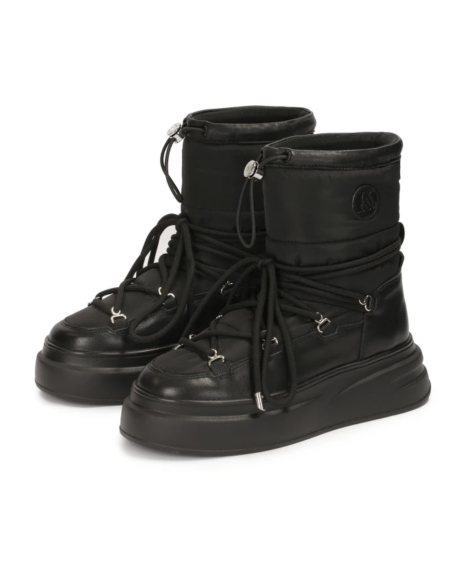 Черные зимние ботинки – модель, мимо которой невозможно пройти равнодушно. Голенище, простирающееся над лодыжкой, очень удобно, а благодаря специальной шнуровке вы можете подогнать обувь по размеру ноги. Модель мягкая и чрезвычайно комфортная внутри, защищает от холода, снега и влаги. На нем можно проехать многие километры!
