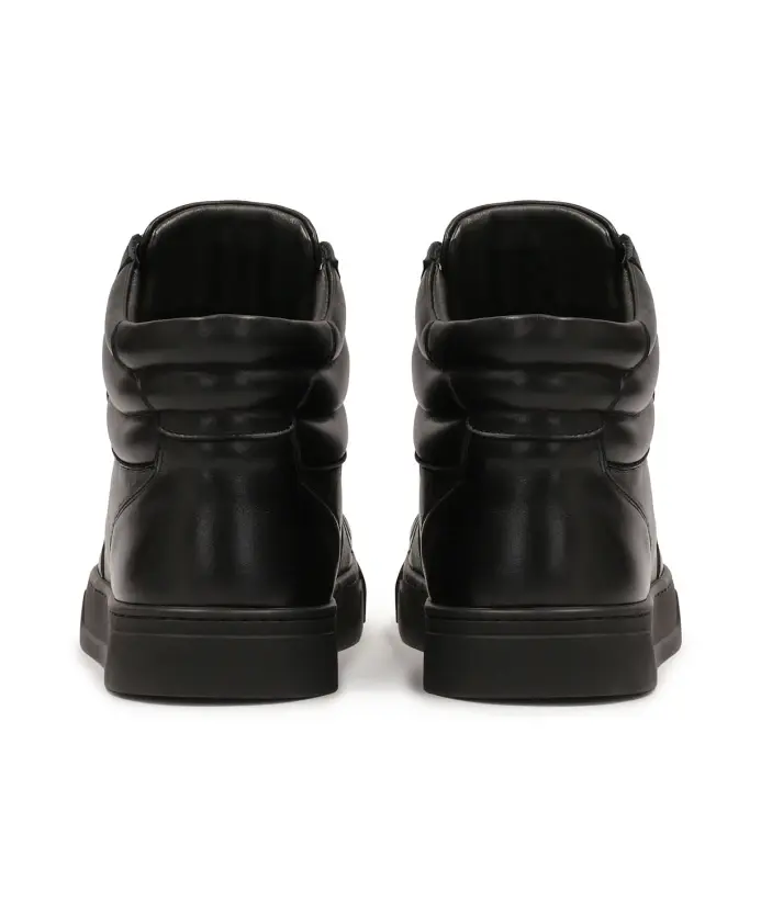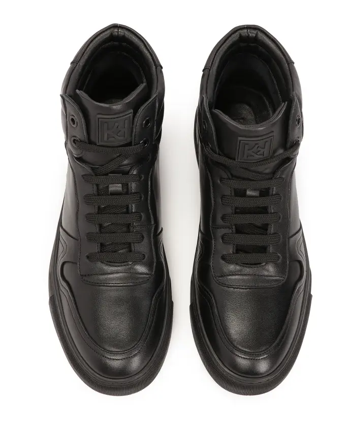 Черные кроссовки с высоким верхом из натуральной кожи – современная и стильная обувь, позволяющая выразить индивидуальность и повседневный стиль. Верх высотой до щиколотки не только добавляет характера, но и обеспечивает дополнительную защиту и поддержку стопы. Застежка на шнуровке позволяет точно подогнать обувь по форме стопы. Черные кроссовки – универсальный предмет мужского гардероба, который хорошо сочетается как с повседневным, так и с уличным стилем. Их можно носить с джинсами, спортивными костюмами или даже элегантными брюками, придавая нотку свежести и современности. Подкладка из мягкой овчины и тканевая меховая подкладка гарантируют высокий комфорт.