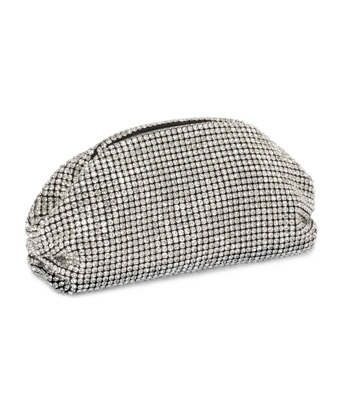 Сумочка, которую можно держать в руке, имеет металлический каркас, который определяет ее форму и служит застежкой. Очаровательная модель свободного кроя покрыта серебряными цирконами, придающими эффект сияния. Достаточно богато декорированной сумочки, чтобы придать всей укладке роскошный, элегантный характер. Подробности о товаре: Сумочка имеет 1 отделение, закрытое металлическим каркасом. Внутри 1 открытый карман.