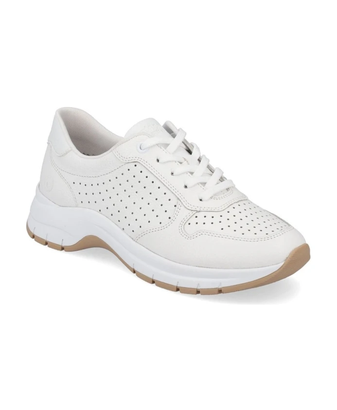 Купите женские белые кожаные кроссовки Remonte (код товара: D0G07-80), которые станут стильным и удобным дополнением к вашей коллекции обуви. Эти кроссовки с кожаным верхом и текстильной подкладкой идеально подходят для взрослых женщин.