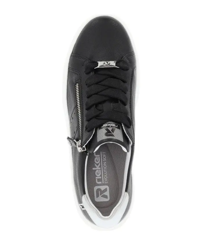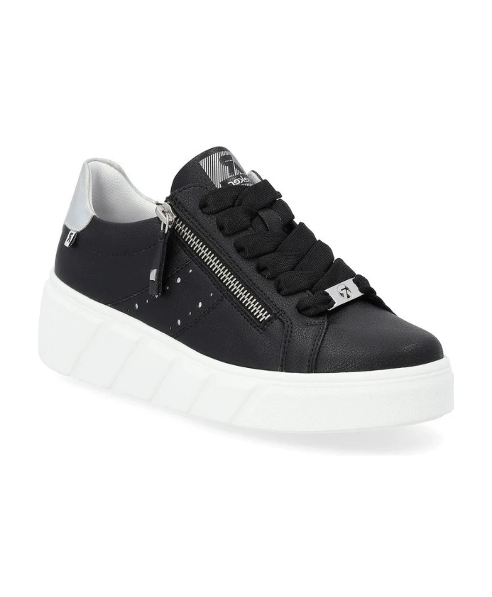 Купите стильные женские черные кроссовки Rieker (код товара: W0505-00) для взрослых. Эти кроссовки с кожаным верхом и текстильной подкладкой идеально подходят для повседневного использования.