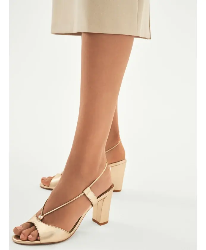 Оригинальные женские босоножки из качественной натуральной кожи привлекают внимание оригинальной пряжкой и роскошным золотистым цветом. Узкий ремешок за пяткой укорочен и подогнан по форме стопы с помощью декоративного металлического стопора. Элегантные босоножки прекрасно подойдут в качестве декоративного элемента во многих летних стилях. Подкладка изготовлена из мягкой овчины для исключительного комфорта. Подошва изготовлена из туниковой кожи, которая отличается прочностью и эстетичным внешним видом.