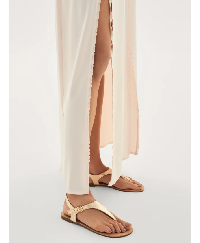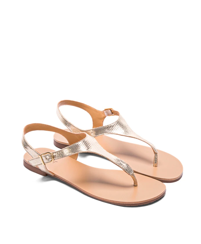 Сандалии из качественной тисненой кожи – легкая, дышащая модель, идеальная для жарких дней. Одинарный ремешок хорошо обнажает стопу, делая обувь практически незаметной на ноге. Минималистский крой и золотистый цвет создают утонченную композицию, которая станет очаровательной основой для самых разных нарядов. Кожаная подкладка обеспечивает комфорт и удобство для ног.