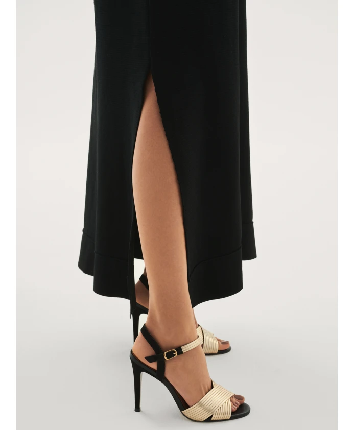Черно-Золотые босоножки из высококачественной лицевой кожи и нубука поражают оригинальным стилем и роскошным дизайном. Классический крой с открытой пяткой и высоким каблуком, украшенный широкими золотыми ремешками, подчеркивающими ее шикарный характер. Элегантные босоножки станут отличным дополнением вечернего наряда. Подкладка из полуанилиновой овчины, обеспечивающая ощущение комфорта на протяжении многих часов благодаря своей мягкости и нежности. Подошва Microlite отличается долговечностью и эстетичным внешним видом.