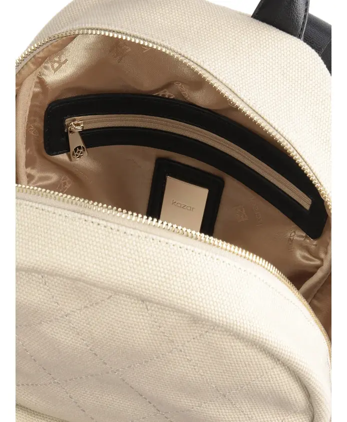 Женский рюкзак бежево-черного цвета из качественного текстильного материала идеален для активного дня. Компактный рюкзак предлагает стильный внешний вид, полную свободу движений и достаточно места для самых важных вещей. Интересный акцент создают белые логотипы KAZAR, контрастирующие с черным материалом. Классический крой, который вы можете легко сочетать со всеми вашими повседневными модными комплектами. Подробности о товаре: Рюкзак имеет основное отделение, которое закрывается на молнию. Внутри карман на молнии и 2 открытых кармана. 1 карман на молнии на передней части сумки. По бокам рюкзака имеются открытые карманы.
