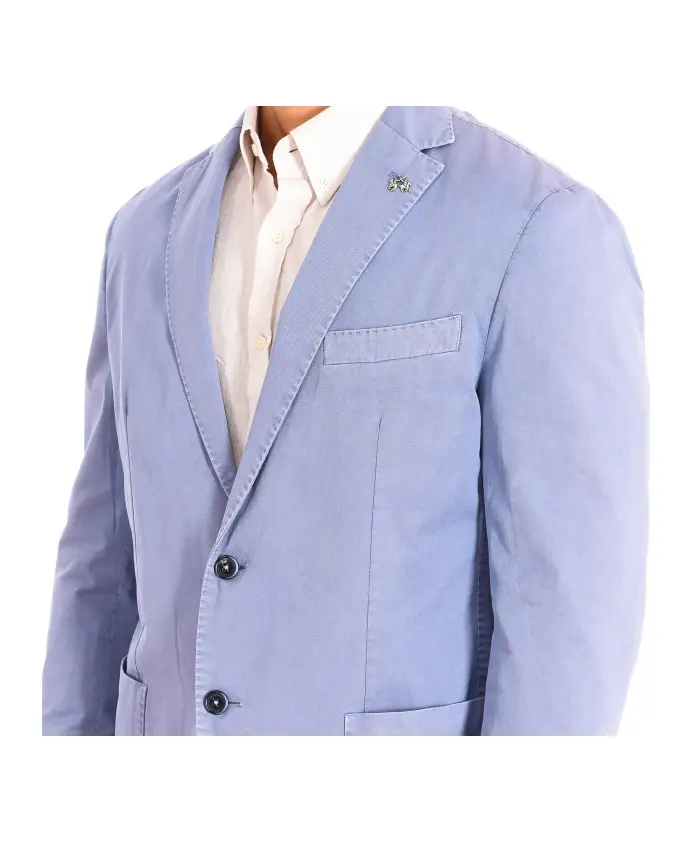 Мужской деловой пиджак с длинными рукавами La Martina — серый. Этот пиджак прямого кроя идеально подойдет к любому силуэту. Воротник с лацканами, двубортная застежка на пуговицы, косые передние карманы и два внутренних кармана. Манжеты на пуговицах и небольшая брошь с логотипом на лацкане придают модели изысканный вид. Изготовлен из 100% хлопка. Рекомендации по уходу: Не стирать в стиральной машине. Гладить при средней температуре, макс. Не сушить в сушильной машине. Не отбеливать.