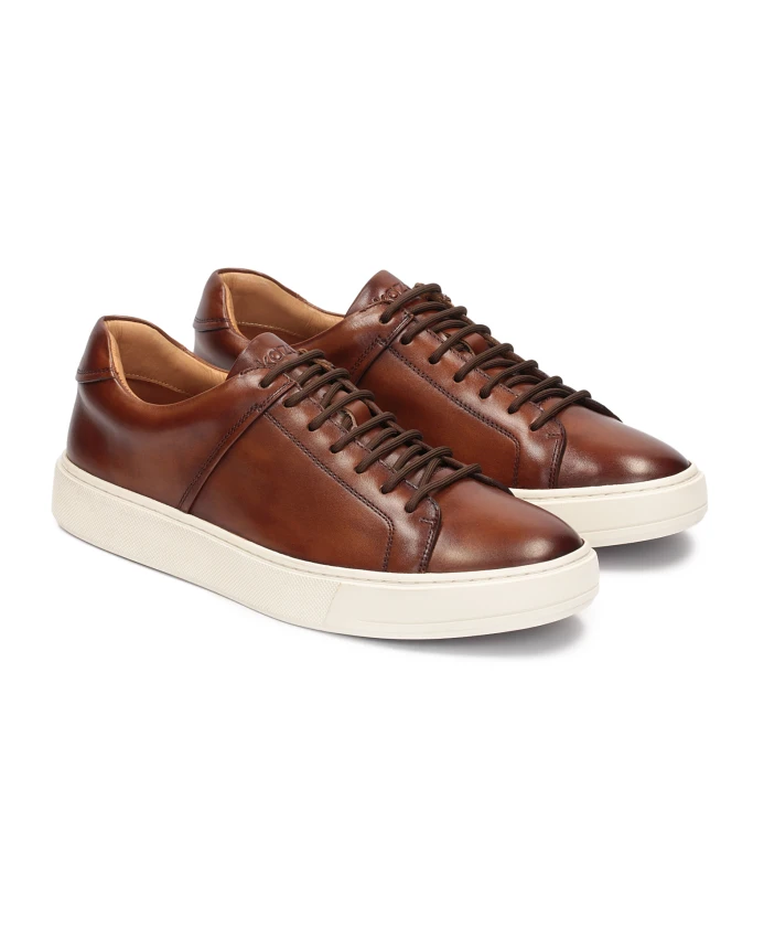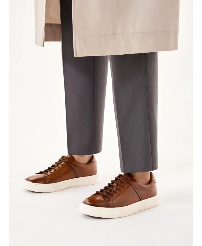 Удобные мужские кроссовки из высококачественной лицевой кожи характеризуются вневременным дизайном и удобной конструкцией. В отличие от коричневой кожи белая подошва придает модели очаровательный и спортивный вид. Удобная обувь элегантного фасона станет идеальным завершением повседневного образа. Комфорт также обеспечивает кожаная подкладка.
