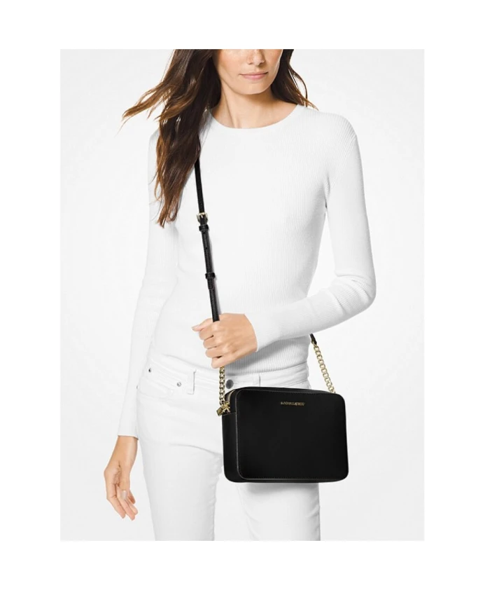 Подчеркните свой стиль с помощью этой черной большой сумки через плечо Jet Set от Michael Kors. Эта сумка из роскошной сафьяновой кожи имеет застежку-молнию, небольшой логотип спереди и внутреннее отделение с двумя накладными карманами. Регулируемый длинный ремень позволяет носить сумку через плечо или через плечо. Размеры: Ширина: 24 см х Высота: 16 см х Глубина: 5 см. Внешняя часть: 100% сафьяновая кожа; Подкладка: 100% полиэстер.