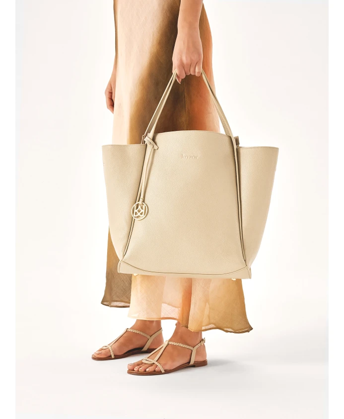 Большая сумка через плечо трапециевидной формы. Kazar, бежевый
