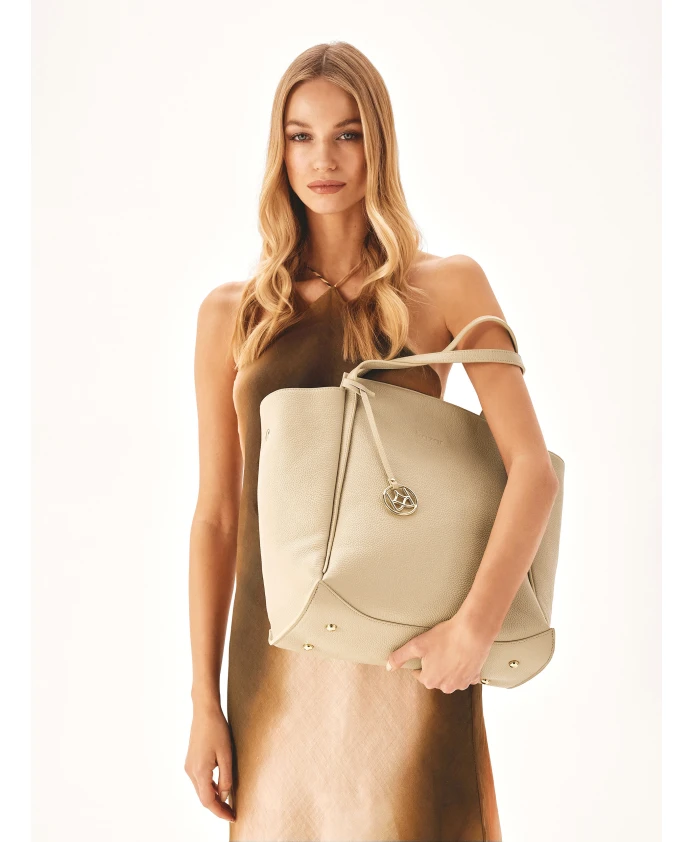 Вместительная сумка через плечо создана для женщин, которые ценят неповторимый стиль, не пренебрегая комфортом. Мягкая, приятная на ощупь кожа с зернистостью придает ей легкость и обеспечивает комфортное ношение. В большой сумке трапециевидной формы поместится все, что вам понадобится в течение дня. Металлические ножки защищают пол от повреждений. Подробности о товаре: Сумочка имеет 1 основное отделение без застежки и 1 карман на молнии. Внутри имеется съемный тканевый карман, закрывающийся на молнию. Сумка имеет 1 карман на молнии и 2 открытых кармана. Внизу сумки имеются металлические ножки. Размеры сумки: 28 х 26 х 12 см.