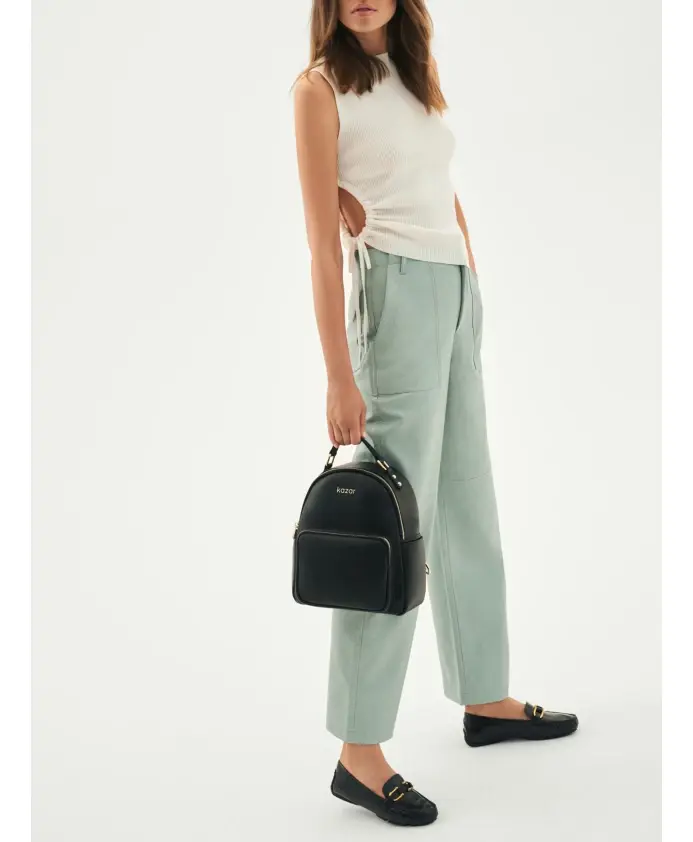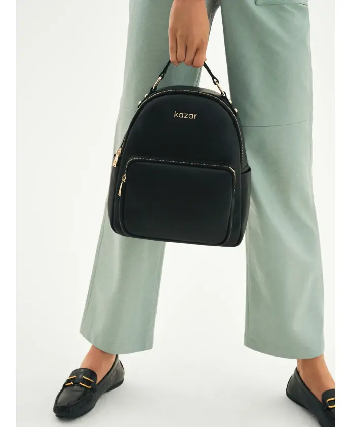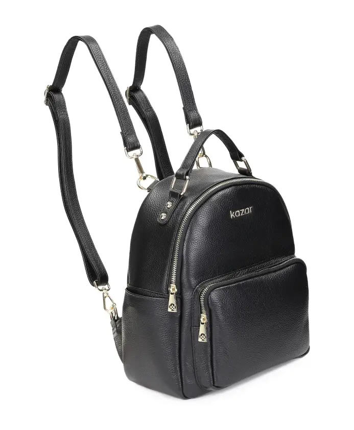 Черный рюкзак в городском стиле из высококачественной лицевой кожи – практичное и функциональное решение для повседневного использования. Компактный рюкзак предлагает стильный внешний вид, полную свободу движений и достаточно места для самых важных вещей. Универсальные цвета подходят к любому наряду. Рюкзак имеет: Регулируемые съемные лямки. Ручка. 1 большое отделение закрывается на молнию. 1 внутренний карман на молнии и 1 открытый карман. 1 карман на молнии на передней части сумки. По бокам 2 открытых кармана. Сзади 1 карман на молнии.
