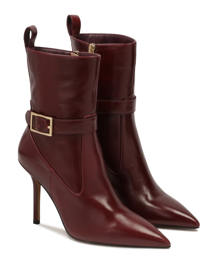 Узкие ботинки на высоком каблуке из высококачественной натуральной кожи элегантного бордового цвета – это квинтэссенция шика и класса. Изысканный дизайн делает их идеальным выбором для особых случаев и повседневного стиля, требующего нотки элегантности. Сапоги характеризуются острыми носами и тонким каблуком, которые визуально удлиняют ноги и придают обуви изысканный вид. Простой верх, заходящий за лодыжку, подчеркивает минималистичный и современный стиль обуви. Верх оснащен боковой молнией, которая облегчает надевание и снятие обуви. Бордовые ботинки идеально подходят для повседневного и вечернего стиля и придают любому ансамблю нотку утонченной элегантности. Мягкая подкладка из овчины гарантирует высокий комфорт, а подкладка из тканевого меха создает ощущение тепла в холодные дни. Подошва-тунискула отличается долговечностью и эстетичным внешним видом.