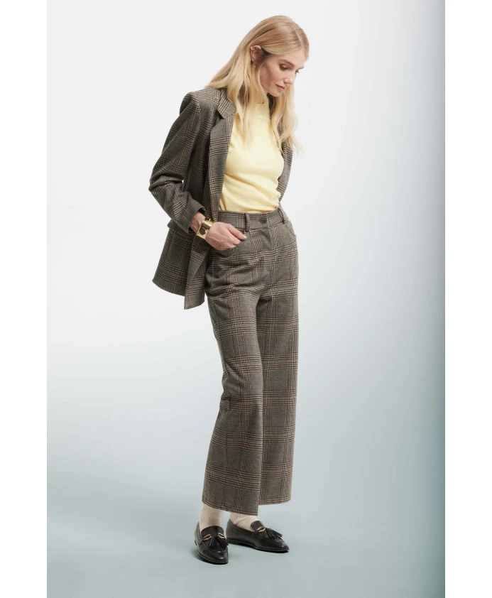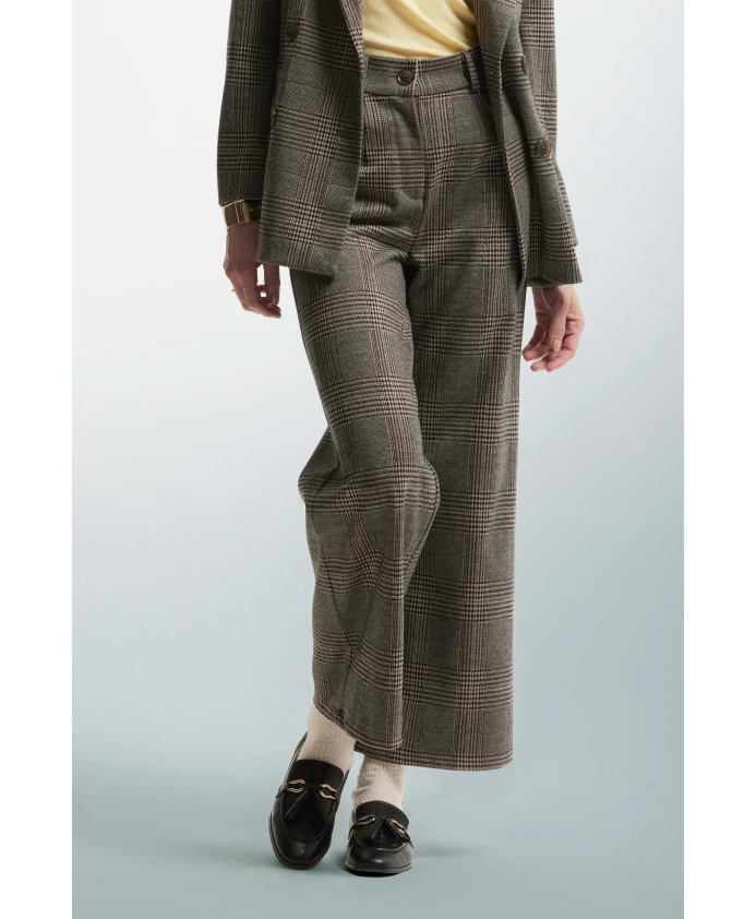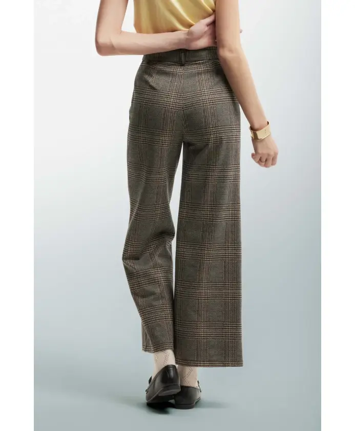 Элегантные расклешенные брюки с завышенной талией из слегка эластичной клетчатой ткани. Идеальный выбор для изысканного и безупречного образа.