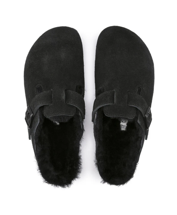 Побалуйте себя этими уютными мужскими сабо Birkenstock Boston. Эти сабо с верхом из черной замши и внешней пряжкой для регулировки посадки имеют стельку из натуральной овчины и стельку анатомической формы из пробки и латекса для максимального комфорта. Эти сабо идеально подходят для повседневного использования. Они имеют стандартную ширину и подходят по размеру.
