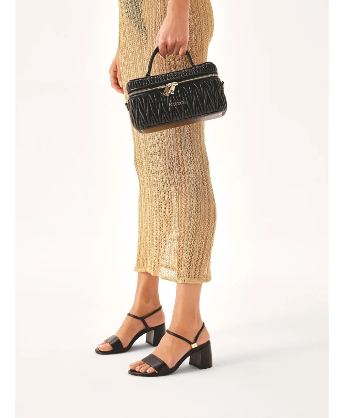 Сандалии на широком удобном каблуке представляют собой безупречную, стильную и прочную модель, которая благодаря нейтральному цвету хорошо сочетается с любым стилем. Обращает на себя внимание оригинальная застежка в виде раздвижной металлической молнии. Тонкий, нежный дизайн делает сандалии привлекательными для любителей минимализма. Высококачественная лицевая кожа обеспечивает долгий срок службы обуви. Миниатюрная подошва отличается прочностью и эстетичным внешним видом. Подкладка из полуанилиновой овчины обеспечивает исключительный комфорт благодаря отличным свойствам поглощения влаги.