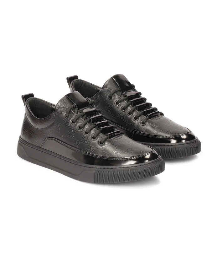 Мужские кроссовки приталенного кроя пошиты из гладкой кожи с монограммным узором KAZAR. Простой верх имеет современную шнуровку, подчеркивающую уникальность этой модели. Тщательная обработка, внимание к деталям и качественные материалы делают эту обувь безупречной, эстетичной и стильной. Удобные кроссовки – основа повседневного стиля. Внутренняя часть обуви из овчины гарантирует гигиенические условия и высокий уровень комфорта.