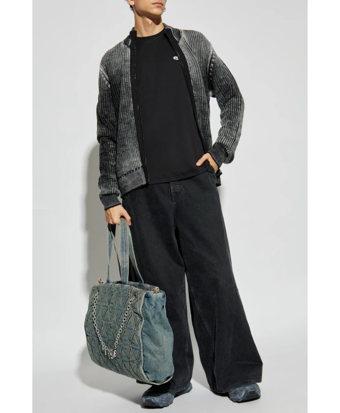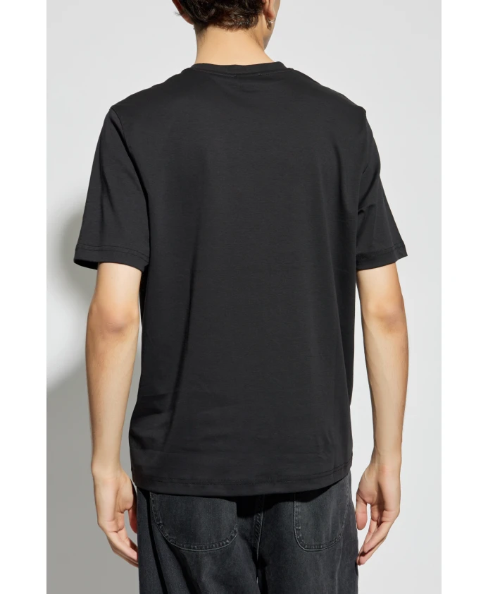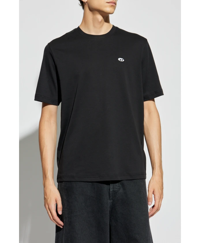 Презентация футболки T-ADJUST-DOVAL-PJ из эксклюзивной мужской коллекции DIESEL. Эта классическая футболка имеет простой крой с короткими рукавами и круглым вырезом, что придает ей повседневный характер и идеально подходит для повседневного стиля. Изделие изготовлено из 100% ХЛОПКА высочайшего качества, что гарантирует исключительный комфорт. Его сплошной черный цвет подчеркивает минималистичный стиль, а мягкий, приятный на ощупь материал подойдет в любой ситуации. Уникальным элементом является небольшой овальный логотип белого цвета с черной каймой, расположенный на левой стороне груди. На логотипе изображена стилизованная буква.