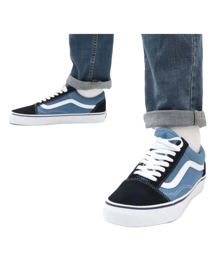 Улучшите свой образ с помощью мужских кроссовок Vans Old Skool синего цвета. Эти туфли из синтетического материала идеально подходят для сезона весна-лето 2024.