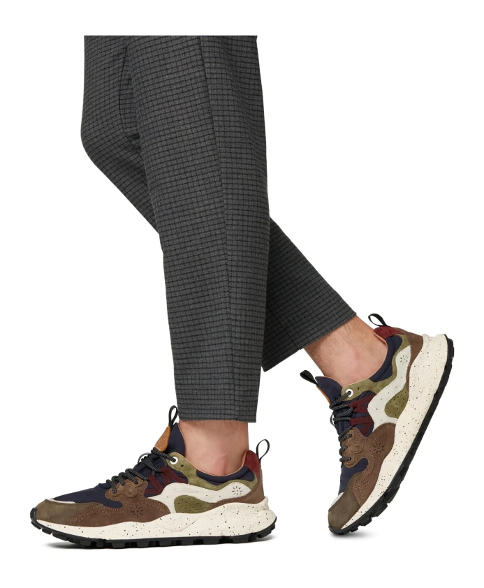 Кроссовки Yamano 3 спортивной формы также являются отличным выбором для столичного образа: верх из технической ткани со вставками из замши украшен культовой перфорацией и шнуровкой с усиленными люверсами, а также шнуровкой, вдохновленной моделями Performance. Стелька из анатомической и антибактериальной пробки, а также сверхлегкая резиновая подошва с боковой формой и зубчатым протектором обеспечивают комфорт и хорошее самочувствие.