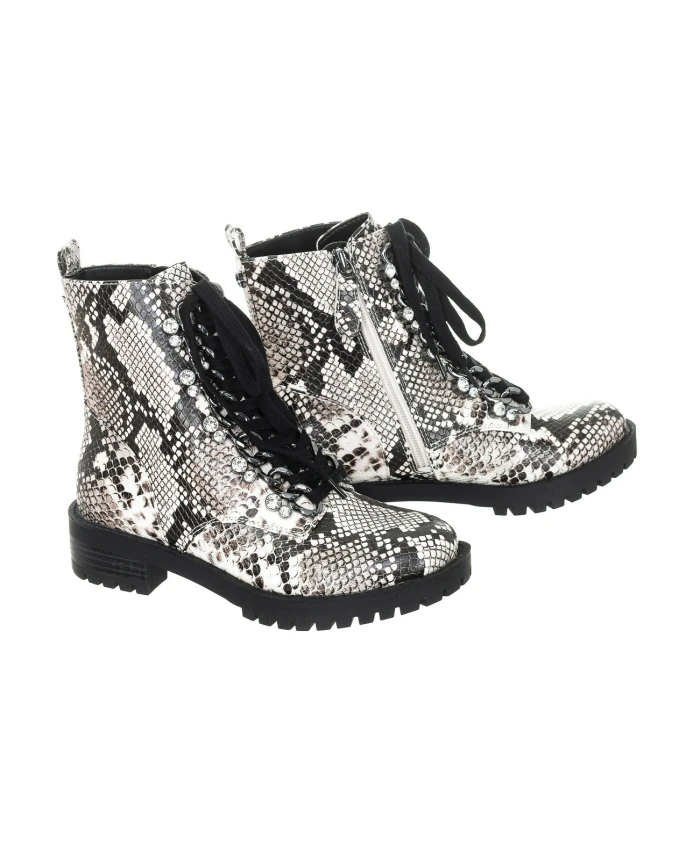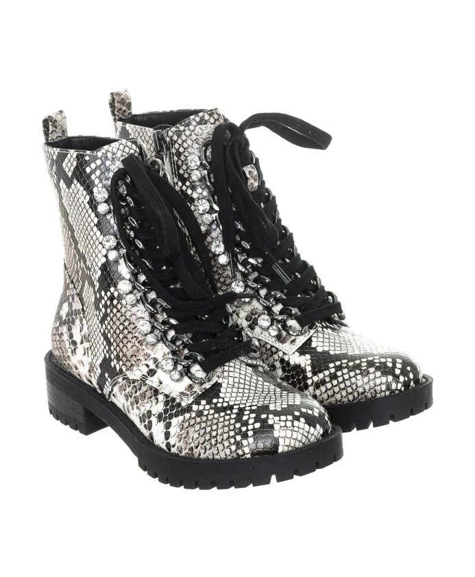 Подчеркните свой стиль с помощью этих оригинальных ботинок на шнуровке от Guess. Закругленный носок, шнуровка и боковая молния для удобства надевания и снятия. Спереди украшен сверкающими стразами. Индивидуальная стелька и нескользящая подошва для дополнительного комфорта. Верх выполнен из синтетического материала, подкладка из текстиля, подошва из синтетического материала и кожи. Высота каблука: 3 см. Рекомендации по уходу: Протирать влажной тряпкой.