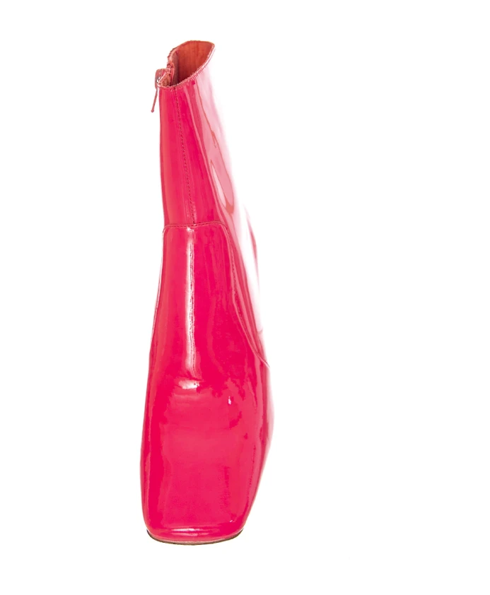 Подчеркните свой стиль с помощью этих розовых ботильонов на каблуке Jeffrey Campbell. Эти ботинки из лакированной кожи с застежкой-молнией и каблуком среднего размера идеально подходят для весны и лета.