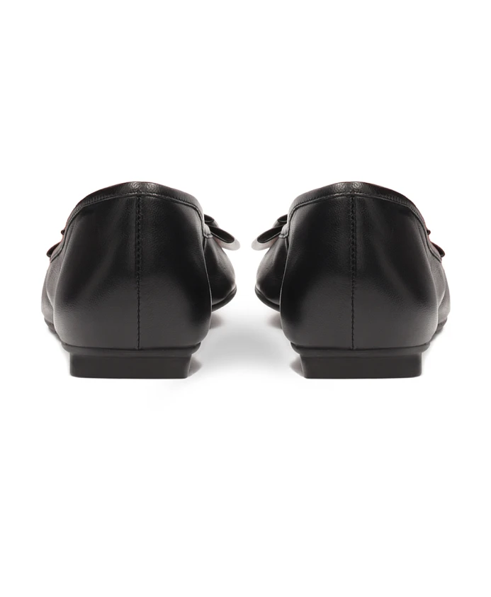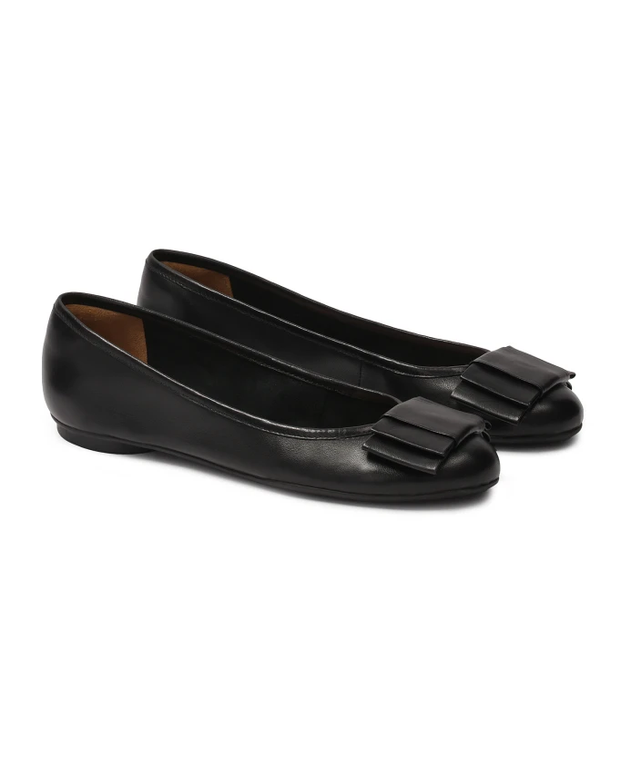 Балетки изготовлены из высококачественной лицевой кожи, что гарантирует их долговечность и прочность, а также обеспечивает достаточную вентиляцию стопы, что способствует долговременному комфорту. Черный цвет придает им вневременной характер, который хорошо сочетается с разными стилями. Бантик на передней части обуви придает им утонченность и женственность и привлекает внимание всех окружающих. Балетки имеют плоскую подошву, обеспечивающую устойчивость и комфорт при ходьбе. Это делает их идеальным выбором как для повседневного использования, так и для особых случаев. Подкладка из полуанилиновой овчины обеспечивает исключительный комфорт благодаря отличным свойствам поглощения влаги.