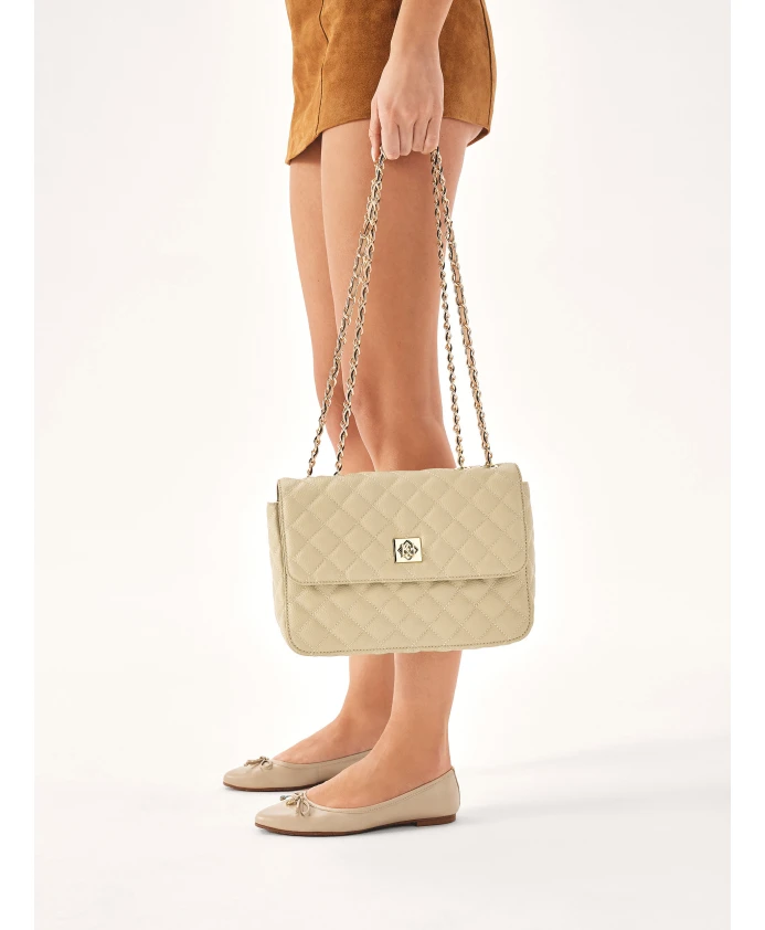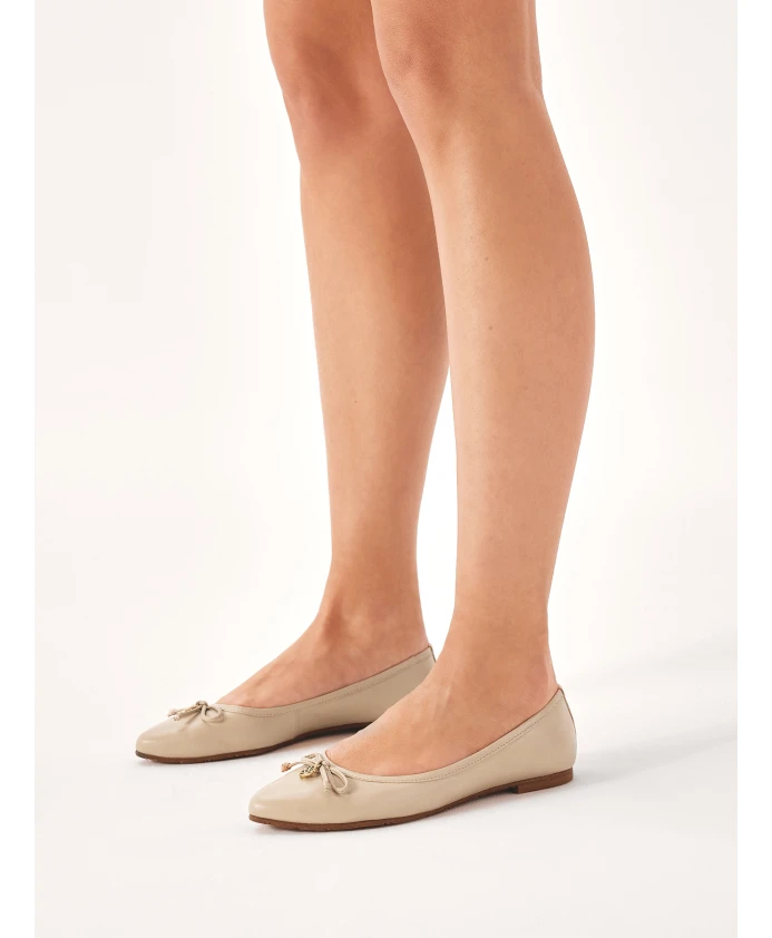 Элегантные балетки бежевого цвета – это квинтэссенция классики и комфорта. Изготовленные из высококачественной натуральной кожи, они гарантируют долговечность и комфорт. Заостренный носок придает модели изысканный вид, а изящный бантик с золотой монограммой представляет собой изящное украшение, подчеркивающее женственный дизайн. Они прекрасно сочетаются с различными нарядами: от повседневного до формального. Эти балетки сочетают в себе традиции и современность, что делает их неотъемлемой частью любого гардероба. Для женщин, ценящих элегантность и качество в каждой детали. Подкладка из полуанилиновой овчины обеспечивает исключительный комфорт благодаря отличным свойствам поглощения влаги.