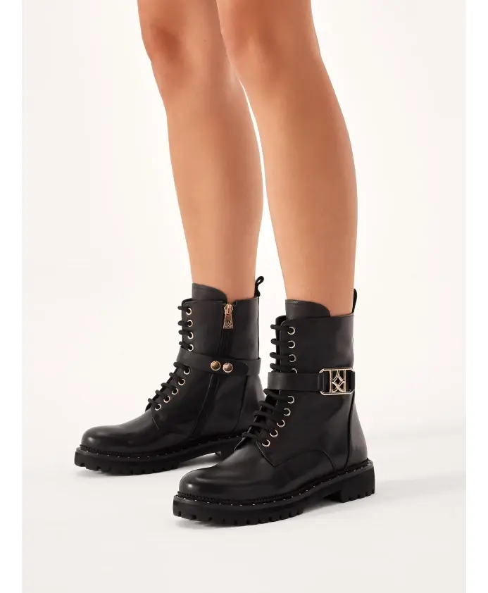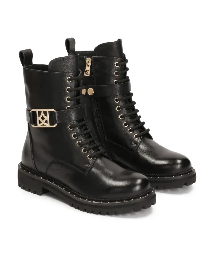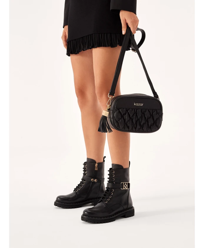 Ботинки на молнии и шнуровке — классическая вневременная модель, подходящая к большинству повседневных нарядов. Высокая голенище из лицевой кожи элегантно сидит на ноге, а плоская подошва обеспечивает высокий уровень комфорта. Ботинки декорированы съемным ремешком с металлической монограммой KAZAR. Подкладка изготовлена из очень мягкой полуанилиновой козьей кожи для максимального комфорта при ходьбе.