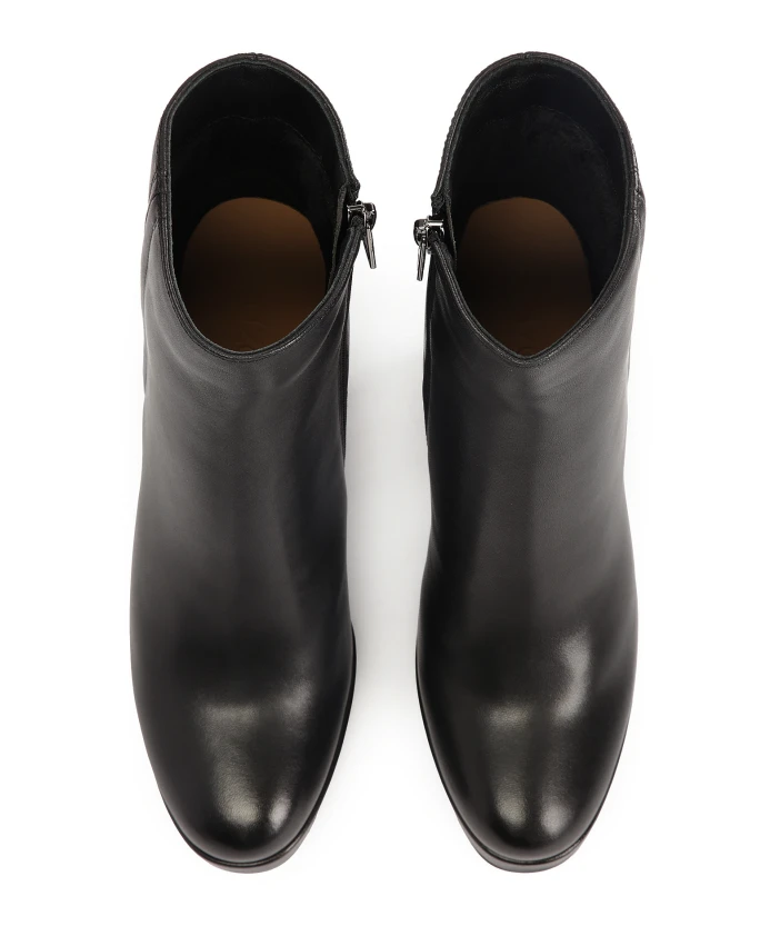 Эти ботинки, выполненные из натуральной кожи универсального черного оттенка, представляют собой элегантную и универсальную обувь, идеально подходящую к самым разным нарядам. Тонкий голенище этих ботинок, доходящее до щиколотки, придает элегантный и стройный вид и подчеркивает линию ноги. Молния сбоку голенища позволяет легко надевать и снимать ботинки, добавляя практичности без ущерба для стиля. Сапоги поставлены на высокую шпильку, сочетающую в себе устойчивость и элегантность. Высокий каблук не только добавляет несколько дюймов высоты, но и более удобен в ношении по сравнению с обувью на шпильке, поскольку обеспечивает большую поддержку и баланс. Вдоль голенища имеется эластичная вставка, которая не только обеспечивает интересную визуальную деталь, но и обеспечивает лучшее прилегание обуви к ноге и повышает комфорт. Сапоги — отличный выбор для женщин, которые ценят классический, но современный стиль. Они прекрасно сочетаются как с элегантными, так и с повседневными нарядами и придают любому стилю нотку изысканности. Подкладка из мягкой полуанилиновой овчины гарантирует высокий комфорт, а тканевая меховая подкладка создает ощущение тепла в холодные дни.