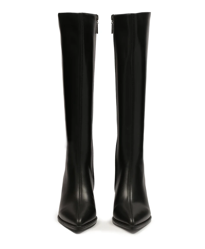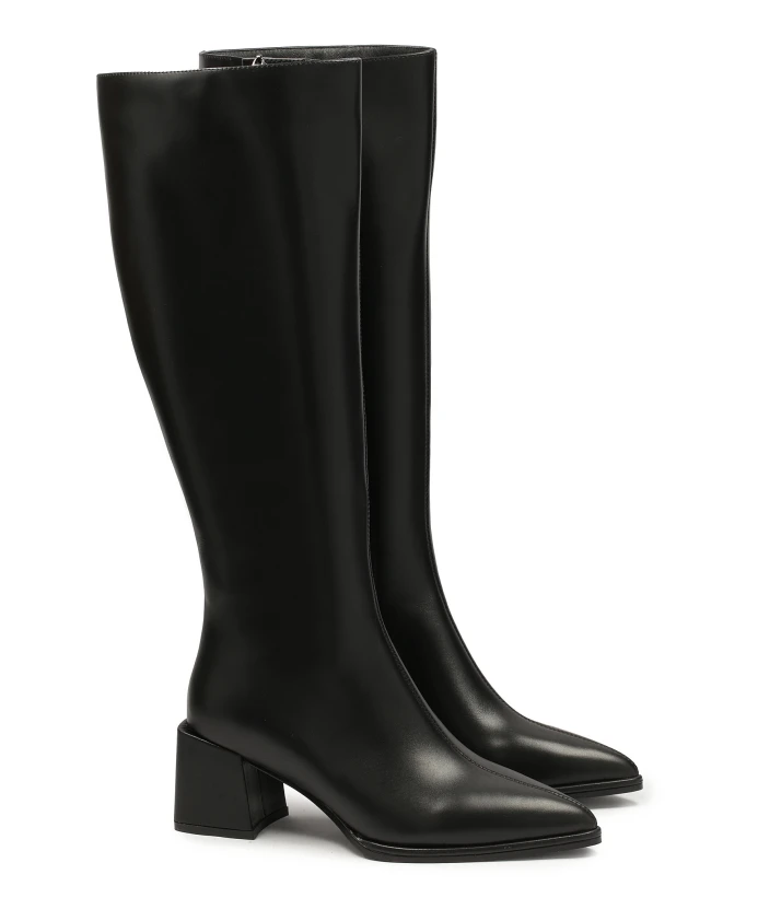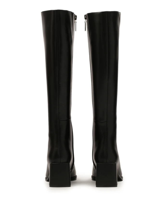 Простые черные ботинки — это элегантная и современная обувь, которая идеально соответствует тренду минималистского дизайна. Качественная натуральная кожа придает ботинкам роскошный вид, обеспечивает долговечность и комфорт. Сапоги характеризуются тонкой линией голенища, которая доходит до икры и создает элегантный и визуально удлиняющий эффект. Одним из самых ярких элементов этих ботинок является квадратный каблук, заходящий за голенище. Этот тип каблука обеспечивает устойчивость и комфорт, придавая ботинкам современный вид. Мягкая подкладка из овчины гарантирует высокий комфорт, а подкладка из тканевого меха обеспечивает ощущение тепла в холодные дни.