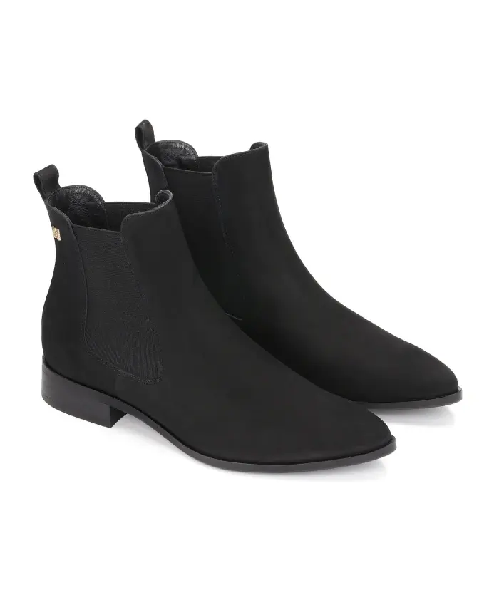 Черные женские ботинки челси из высококачественного нубука исключительно простого классического дизайна. Модель наверняка подойдет большинству стилей и придаст нотку характера. Стелька изготовлена из ультратонкой козьей кожи, обеспечивающей комфорт при ходьбе. С эластичными вставками по бокам верха для легкого надевания и снятия и идеальной посадки. Подошва украшена монограммой KAZAR FiForm.