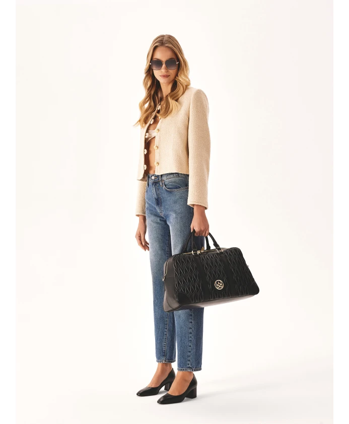 Черные классические туфли-лодочки на широком каблуке имеют простой, но уникальный дизайн, привлекающий внимание и придающий индивидуальность любому женскому крою. Верх этих туфель тщательно изготовлен из мягкой и прочной лицевой кожи, что обеспечивает не только исключительную эстетику, но и комфорт. Широкий каблук гарантирует устойчивость и комфорт при ходьбе, что делает их идеальным выбором для долгих дней в офисе, вечерних прогулок или особых случаев. Черные классические туфли – это не только обувь, но и символ хорошего вкуса и элегантности. Подкладка и меховая подкладка из мягкой полуанилиновой козьей кожи гарантируют исключительный комфорт. Подошва из тунисской кожи отличается долговечностью и эстетичным внешним видом.