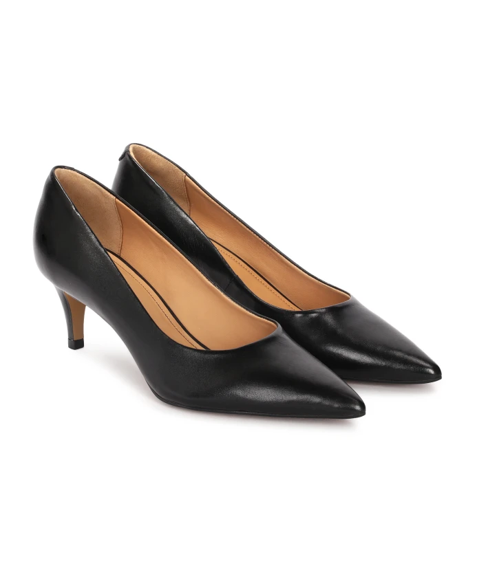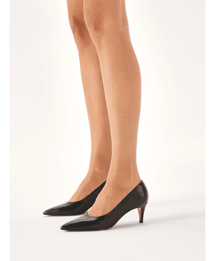 Вневременная женская обувь из высококачественной лицевой кожи – абсолютная классика, которая никогда не выходит из моды. Ее классический простой крой является абсолютным хитом и завоевывает признание каждой женщины. Черный верх минималистичный, но в то же время чрезвычайно элегантный и идеально вписывается в самые разные стили. Туфли характеризуются заостренными носами и тонким каблуком, что придает им неподвластный времени шарм. Это универсальная модель, которая является незаменимой вещью в женском гардеробе и придает укладке неповторимый характер. Подкладка из мягкой полуанилиновой овчины, отличающейся отличным впитыванием влаги, гарантирует высокий уровень комфорта. Подошва из тунисской кожи гарантирует долговечность, прочность и эстетичный внешний вид обуви.