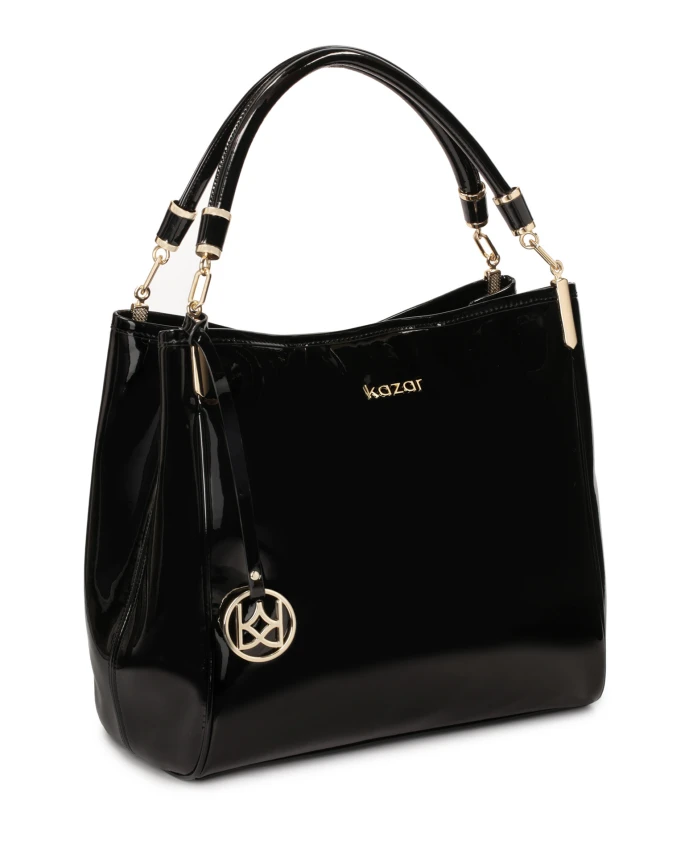 Лакированная сумка через плечо с брелоком для ключей Kazar, черный
