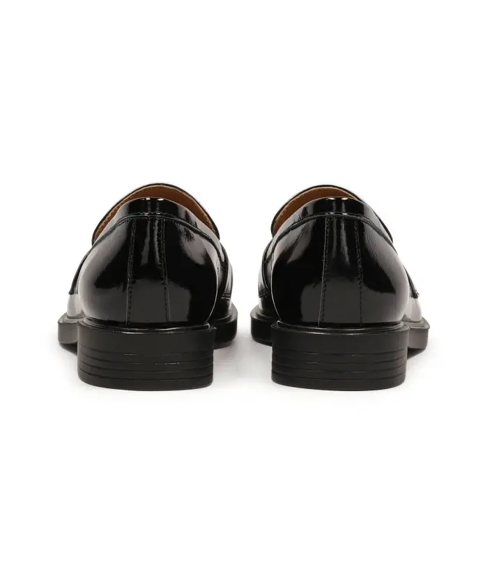 Минималистичные черные тапочки на плоском каблуке – модель, олицетворяющая квинтэссенцию элегантности, комфорта и высокого качества. Блестящая лакированная кожа подчеркивает тонкий крой верха, придавая ему изысканный вид. Черные слипоны в классическом стиле станут идеальной базой для повседневного, офисного и формального стиля. Внутренняя подкладка обуви, облицованная полуанилиновой козьей кожей, гарантирует гигиенические условия и высокий уровень комфорта.