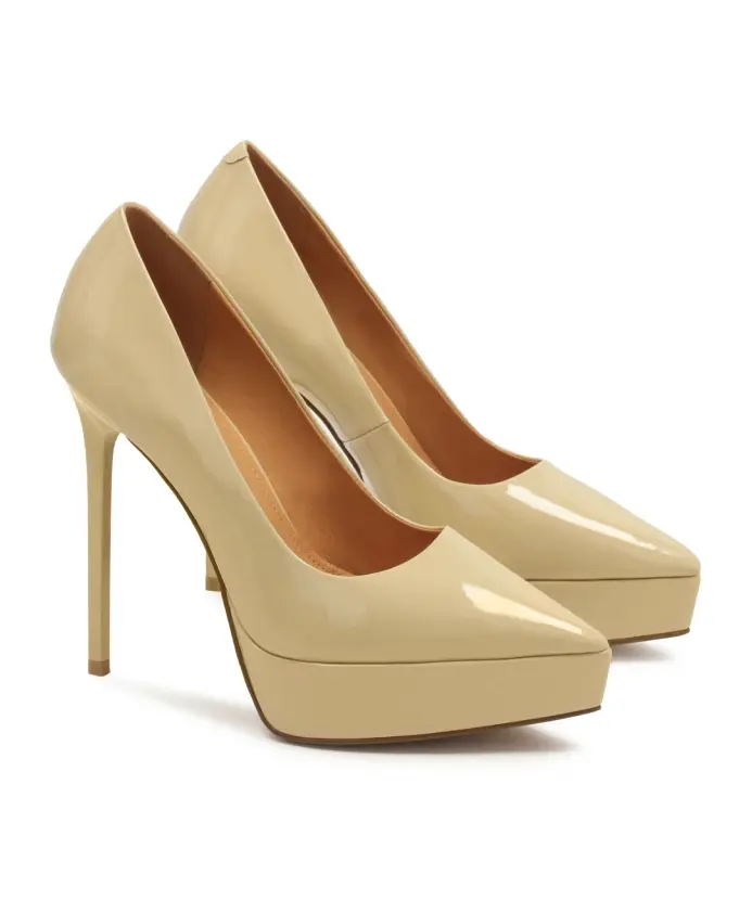 Представляем туфли-лодочки, сочетающие классический дизайн с современным подходом к моде. Выполненные из лакированной бежевой кожи, они излучают утонченность и элегантность и придают нотку бунтарства благодаря высокой подошве на платформе и каблуке-шпильке. Изумительно скроенный заостренный носок добавляет ей изысканности и делает ее идеальным выбором для женщин, которые хотят чувствовать себя уверенно и стильно в любой ситуации. Туфли на платформе – отличный выбор для тех, кто ценит неподвластную времени элегантность, но в то же время хочет подчеркнуть свой индивидуальный характер. Обогащенная ими укладка точно не останется незамеченной. Тунисская подошва отличается долговечностью и эстетичным внешним видом. Подкладка из тонкой полуанилиновой овчины обеспечивает исключительный комфорт.