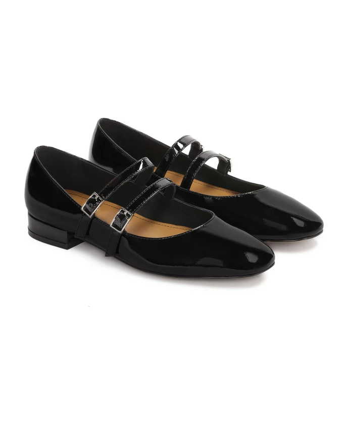 Черные туфли-лодочки на плоской подошве на невысоком каблуке – элегантная и классическая обувь, сочетающая в себе шик и комфорт. Изготовленные из высококачественной лакированной кожи, они имеют глянцевую поверхность, придающую изделию изысканный вид. Эти туфли идеально подходят как для официальных мероприятий, так и для повседневного стиля. Модель Mary Jane имеет два фирменных ремешка, застегивающихся на пряжки. Эти ремни не только выполняют декоративную функцию, но также обеспечивают лучшую посадку и устойчивость стопы. Благодаря этому туфли-лодочки удобны и надежно сидят на ноге. Черные лаковые туфли – это сочетание классической элегантности и практичности, идеальное решение для женщин, которые хотят выглядеть стильно, не жертвуя при этом комфортом. Подкладка из мягкой полуанилиновой овчины, отличающейся отличным впитыванием влаги, гарантирует высокий уровень комфорта. Подошва из тунисской кожи гарантирует долговечность, прочность и эстетичный внешний вид обуви.