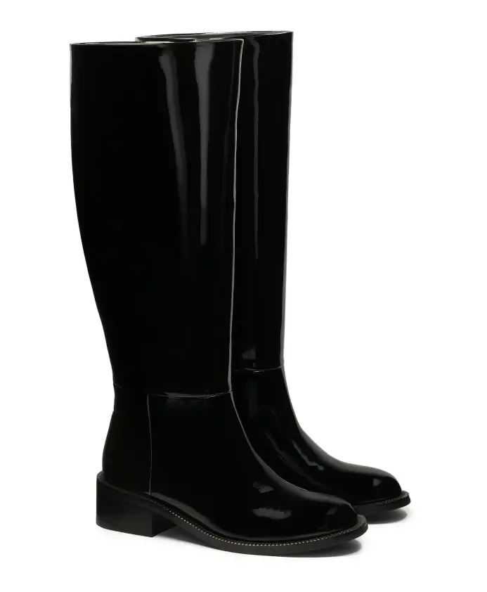 Классические ботинки в стиле ботфорты из качественной лаковой кожи – модель, выполненная с вниманием к деталям и с учетом последних тенденций. Фасон с минималистичным верхом, оснащенным длинной молнией и закругленными носами, прекрасно смотрится в вечном черном цвете. Их простой, но стильный дизайн делает их вневременными и может стать основой для многих модных стилей. Подкладка из мягкой полуанилиновой овчины гарантирует высокий комфорт, а тканевая меховая подкладка создает ощущение тепла в холодные дни.