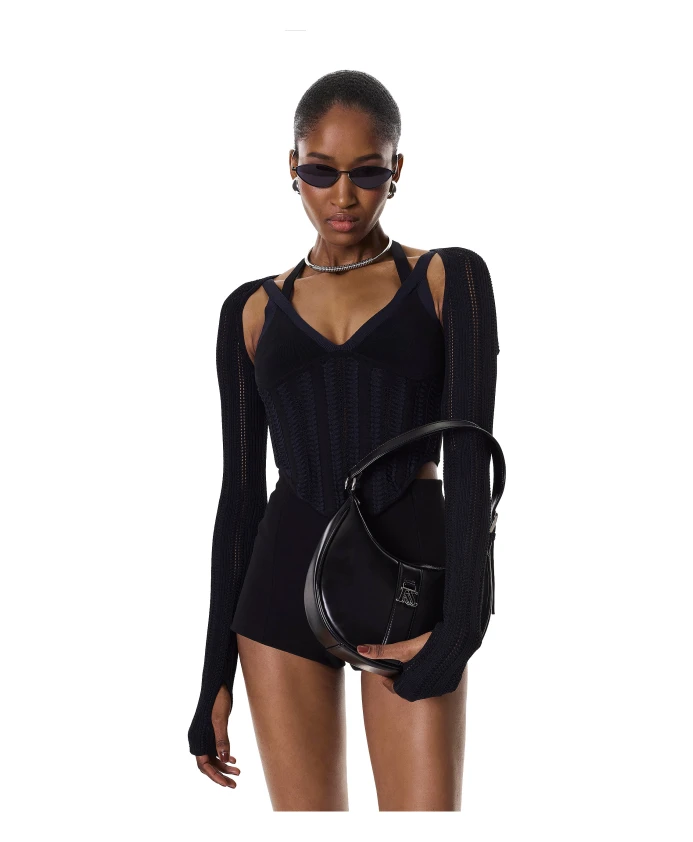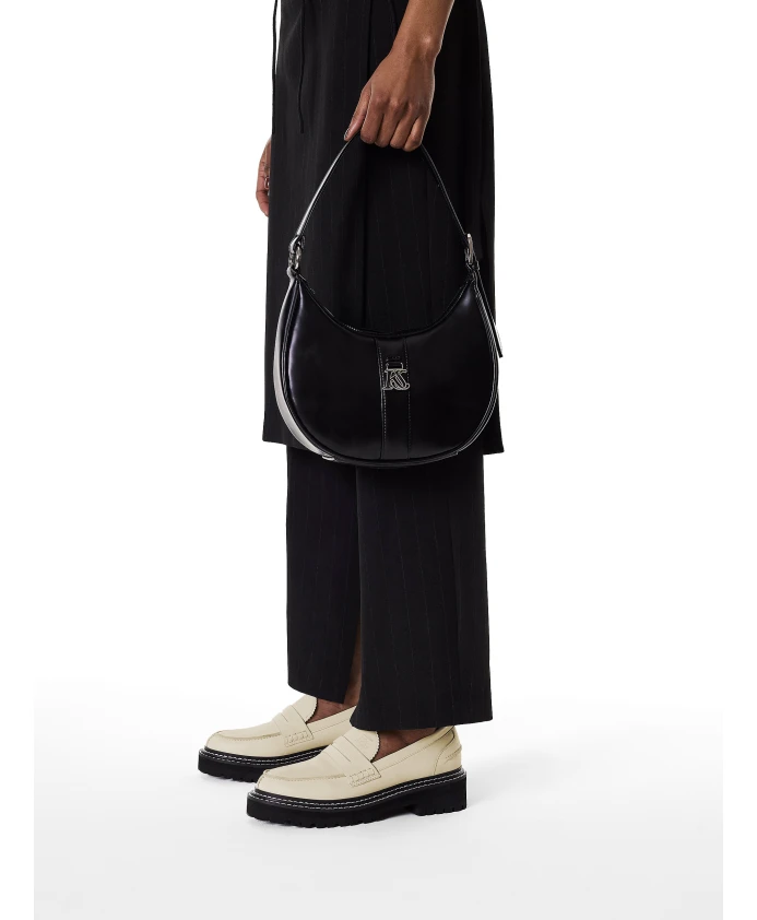 Чрезвычайно женственная модель сумки из натуральной лицевой кожи отражает не только ваш стиль, но и ваши скрытые желания... Благодаря своей современной геометрической форме эта черная сумка придаст неповторимость любому стилю. Носите их с рубашкой, брюками с высокой талией и кожаными босоножками на высоком каблуке. Детали изделия: Основное отделение закрывается на молнию. Внутри 1 карман на молнии и 1 открытый карман. Несъемная ручка с регулируемой пряжкой с четырьмя петлями.