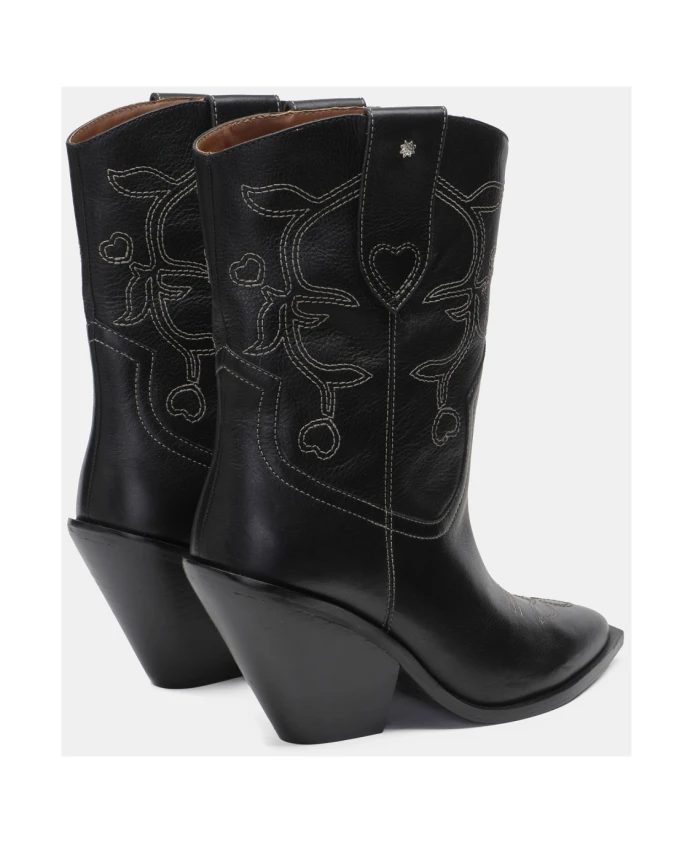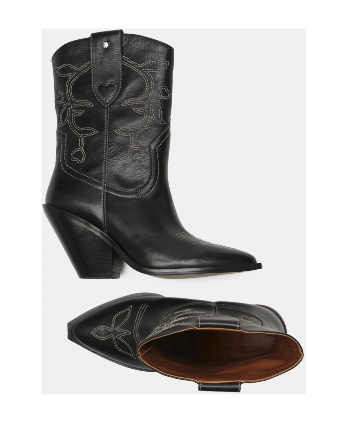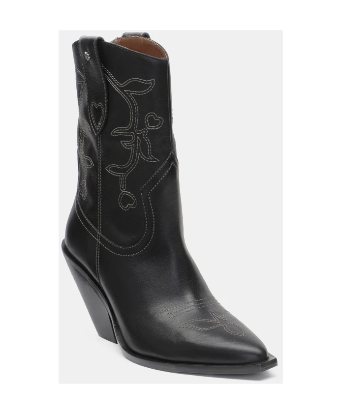 Эти черные ковбойские сапоги с острым носком, скошенным каблуком и кожаной отделкой на носках и по бокам. Эти ботинки, изготовленные из 100% коровьей кожи, дополнят любой образ.