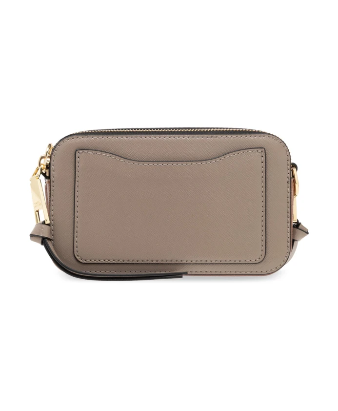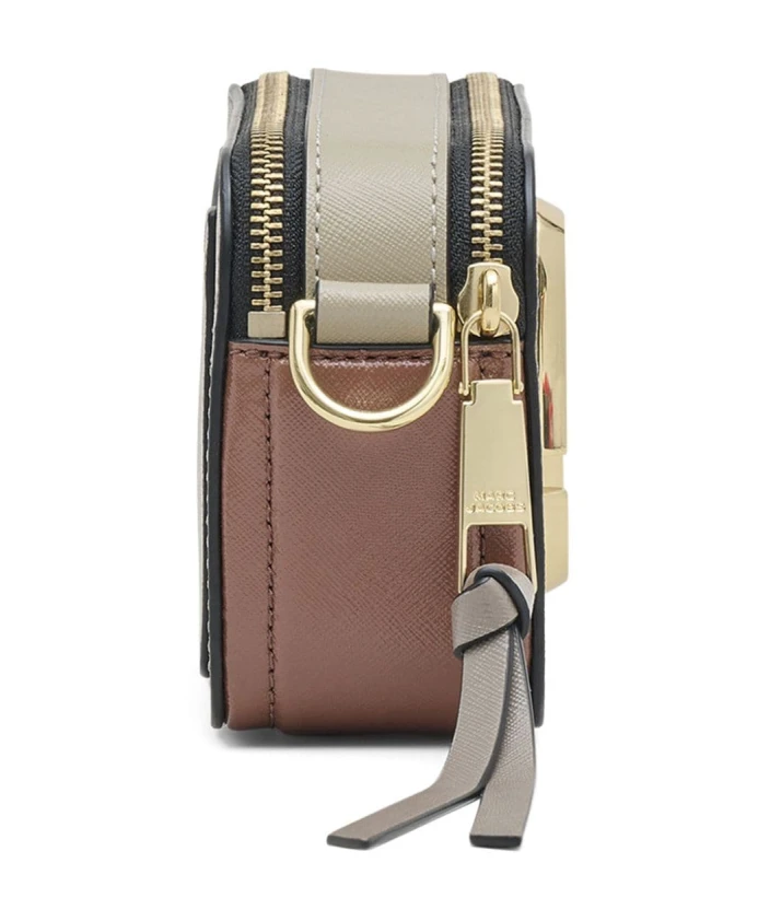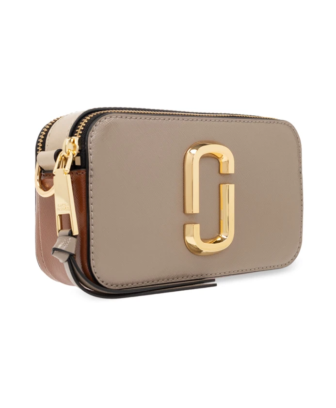 Подчеркните свой стиль с помощью этой элегантной сумки через плечо Marc Jacobs The Snapshot из серо-коричневой сафьяновой кожи. Модель выполнена в стиле колор-блок со светло-бежевыми акцентами, культовым металлическим логотипом золотистого цвета и двумя отделениями на молнии. Съемный регулируемый черный тканый ремешок придает модели современный вид. Эта сумка идеально подходит для женщин, следящих за модой. Она также практична в использовании благодаря внутреннему и внешнему накладным карманам. Размеры: Д: 18 см х Д: 6 см х В: 11 см. Длина ремешка: 144 см; Ширина ремешка: 5 см; Высота ремешка: 68 см.