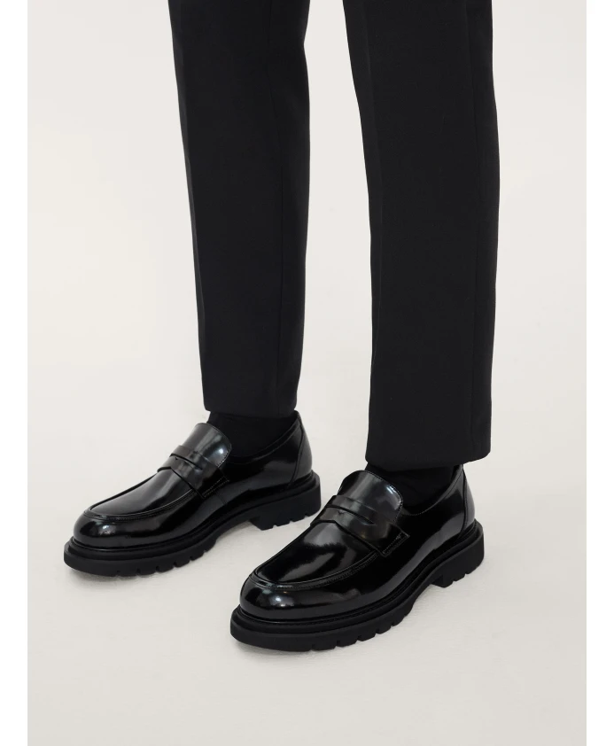 Подчеркните свой стиль с помощью этих дизайнерских мужских лоферов от Kazar. Эти современные лоферы, выполненные из высококачественной лицевой кожи черного цвета, имеют толстую походную подошву, создающую современный вид. Эти стильные и удобные слипоны идеально подходят для элегантного повседневного образа, а подкладка из овчины обеспечивает гигиенические условия и комфорт.